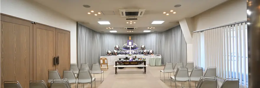 対応を確認できる事前相談で当ホールに足を運んでいただいた際には、各式場をご見学いただけます。写真だけでは伝わりにくい式場の広さや雰囲気を体感することで、実際の葬儀をより具体的にイメージしやすくなります。また事前相談では、葬儀に携わるスタッフがお話を伺いますので、担当者の人柄なども感じていただけるかと存じます。